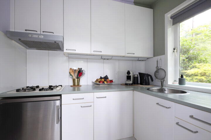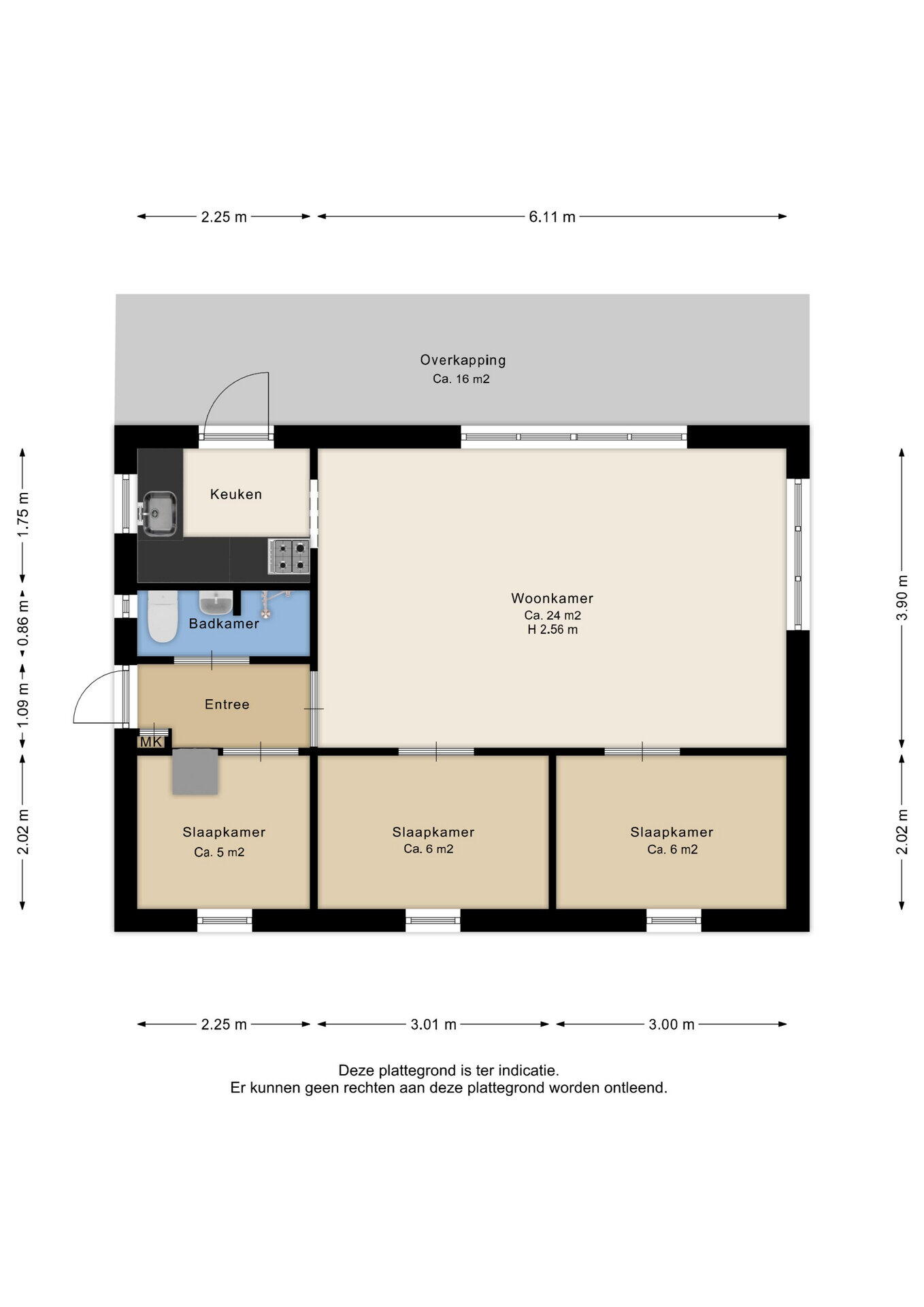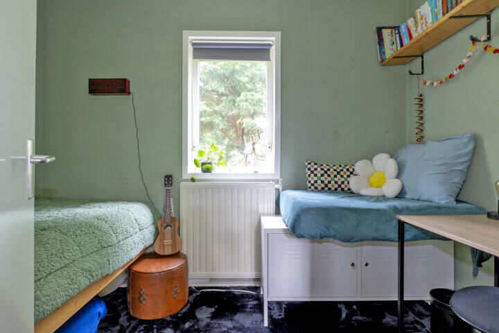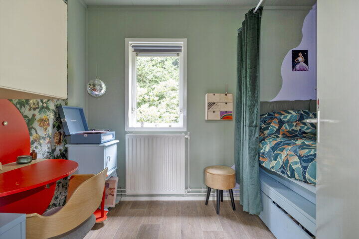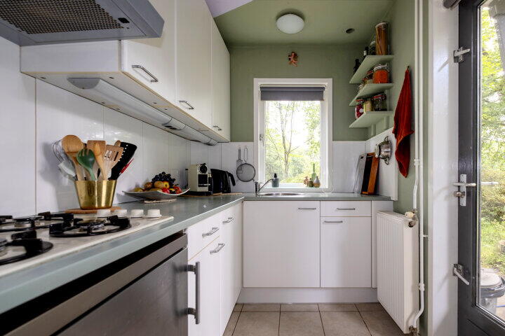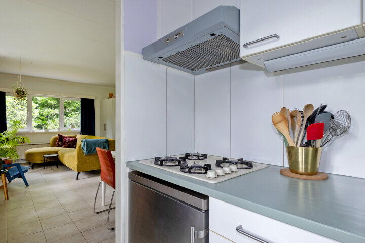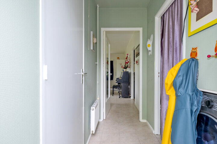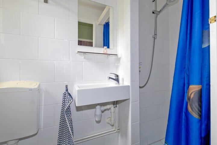 Entree in hal met garderobe en meterkast. De woonkamer (ca. 24m²) is licht en ruimtelijk, met grote ramen die zorgen voor veel natuurlijke lichtinval en een prachtig uitzicht op de omgeving. De dichte keuken is eenvoudig en voorzien van een koelkast, 4-pits gaskookplaat, afzuigkap en volop bergruimte. Aan de achterzijde van de woning zijn 3 slaapkamers (ca. 5m², ca. 6m² en ca. 6m²). Tot slot is er uiteraard een badkamer aanwezig, de is voorzien van douche, wastafel en toilet.