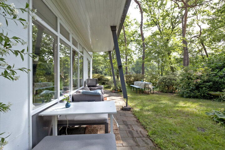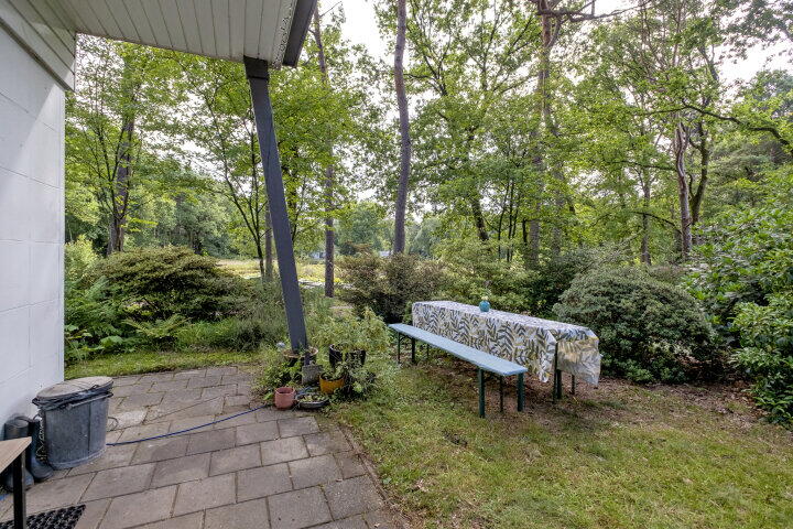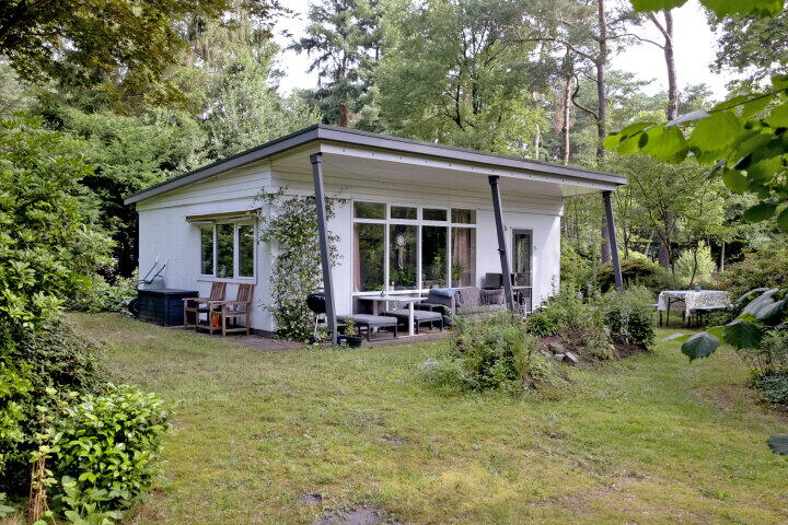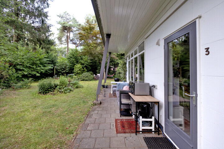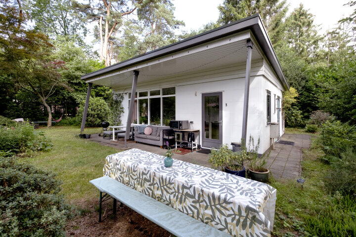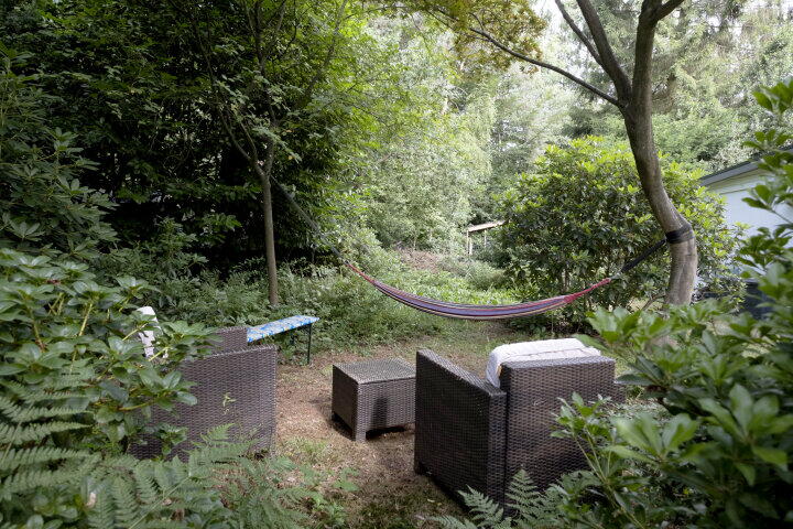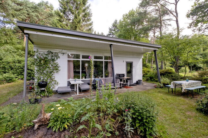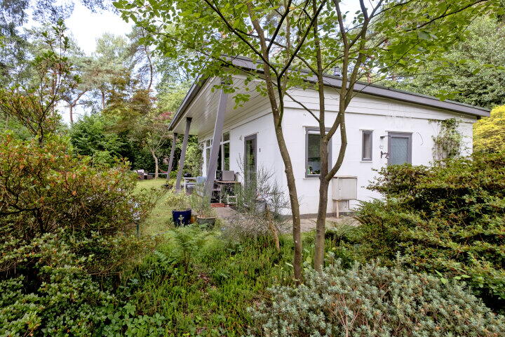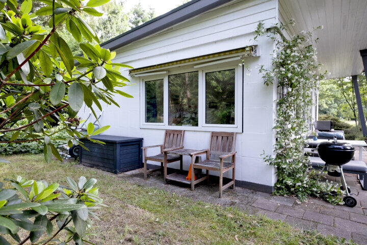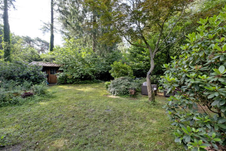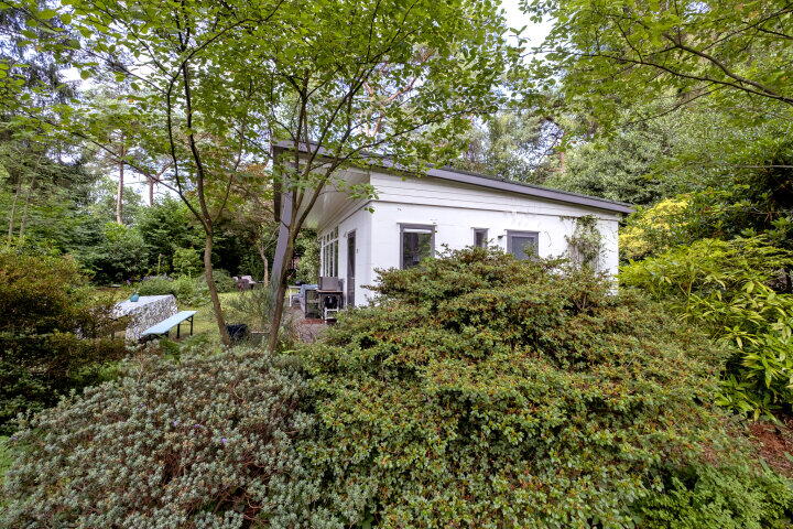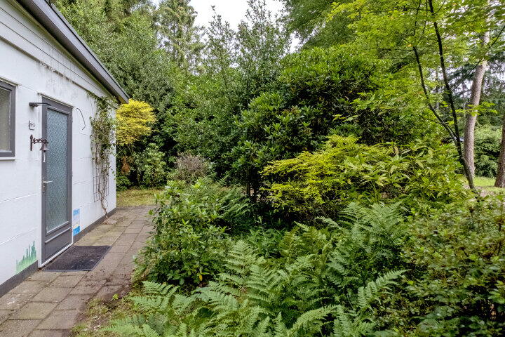 TUIN: Het overstekende dak zorgt voor een heerlijke plek om buiten te zitten in elke weersomstandigheid. De woning staat in het bos, aan de rand van het grote ven, waar je kunt genieten van je privacy, rust en de natuur. Rondom bloeien er het hele jaar door verschillende bloemen om van te genieten. Er is een blokhut aanwezig, ideaal voor het opbergen van fietsen en/of tuingereedschap.